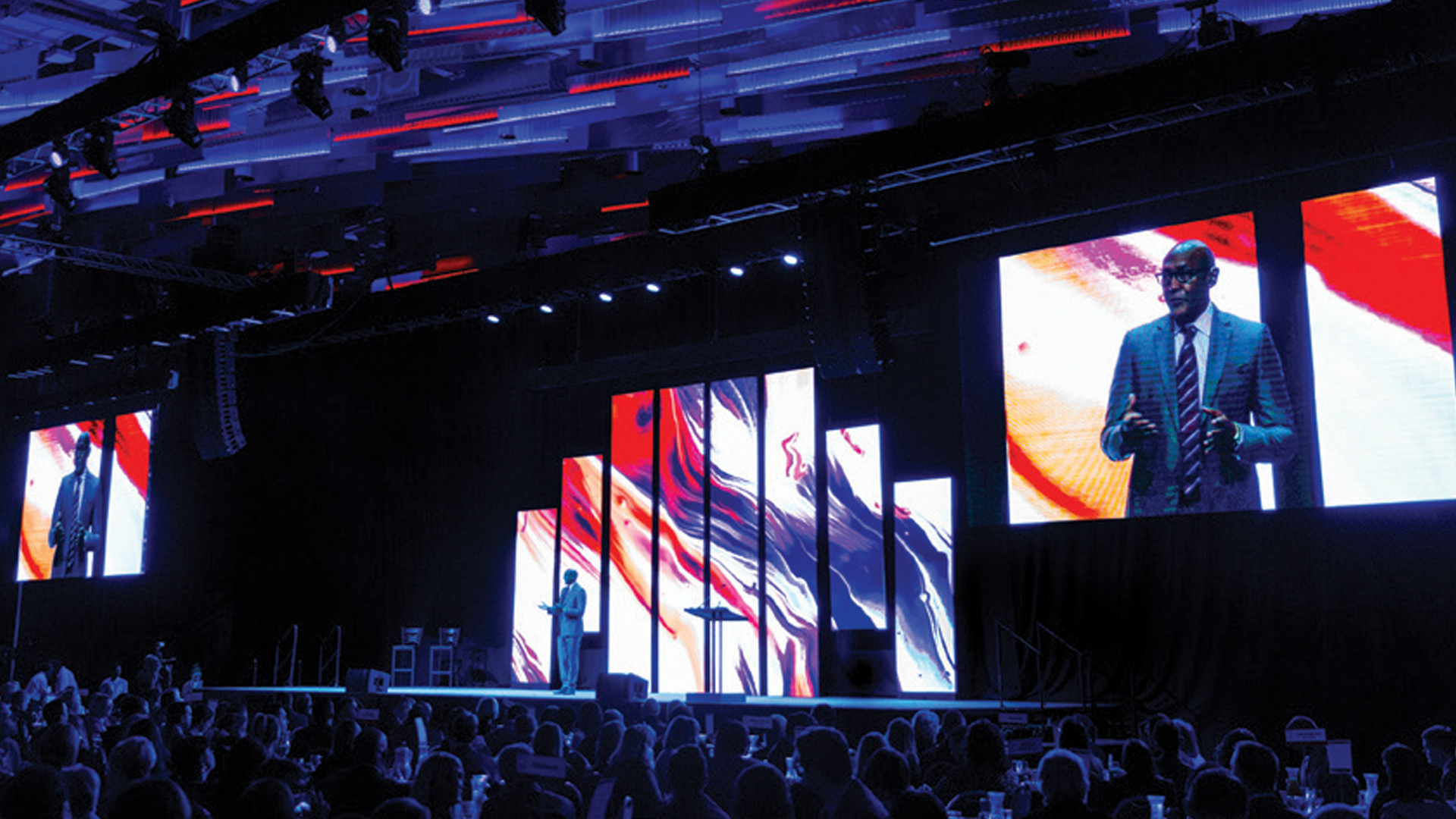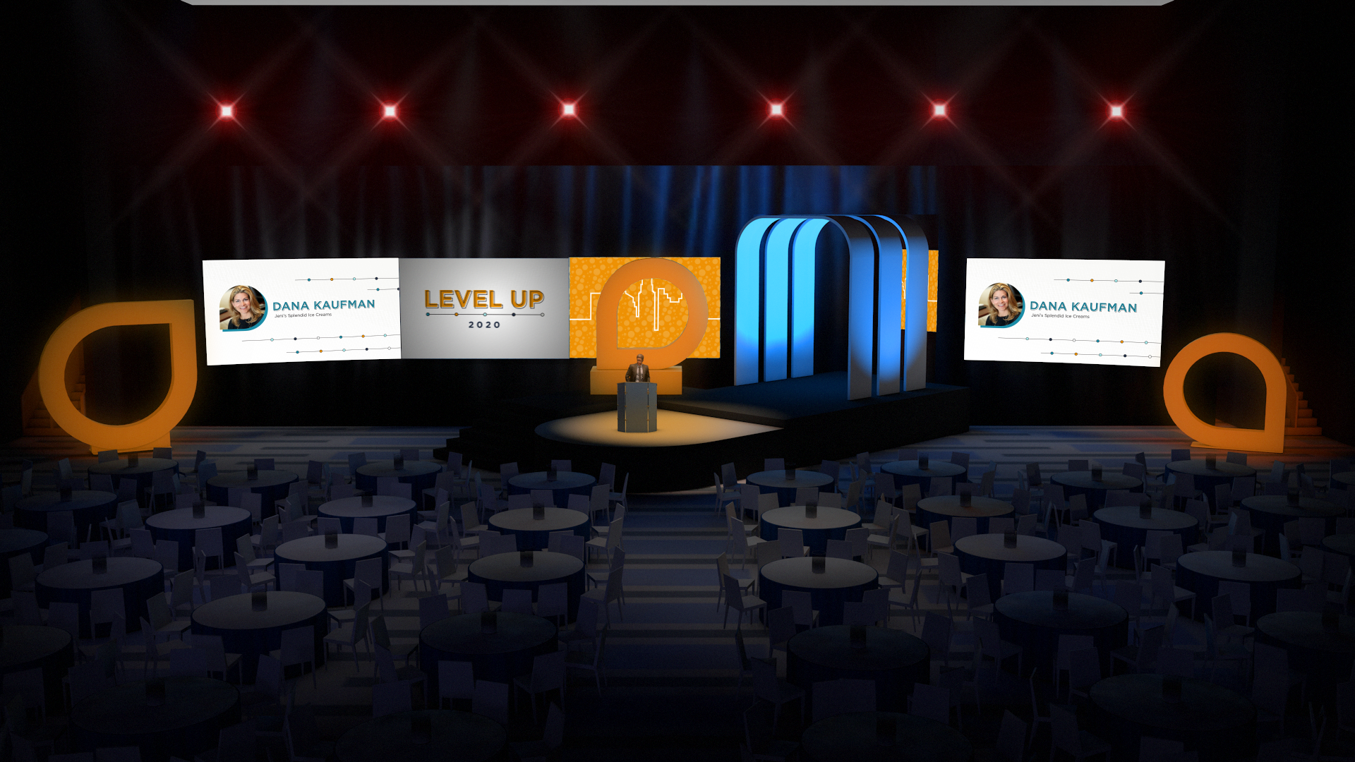 During my time working as a motion designer in live events, I served as a set designer over a 2-year period, using 3d renders to pre-visualize to clients how sets may look when fully realized. My experience included both live stages and trade show booths. Overall, I created over 40 set renderings during that time. Designing sets helped me understand spatial design, and helped inform my motion design direction for screen content.Below are some side-by-side comparisons between my 3d renderings and the eventual fully-realized sets. I worked with our creative director, fabrication engineers, lighting designers, and show runners to make sure my designs were compatible with their process. This gave me a huge insight into the workflow that goes into planning a live event from a standpoint outside of strictly motion graphics.